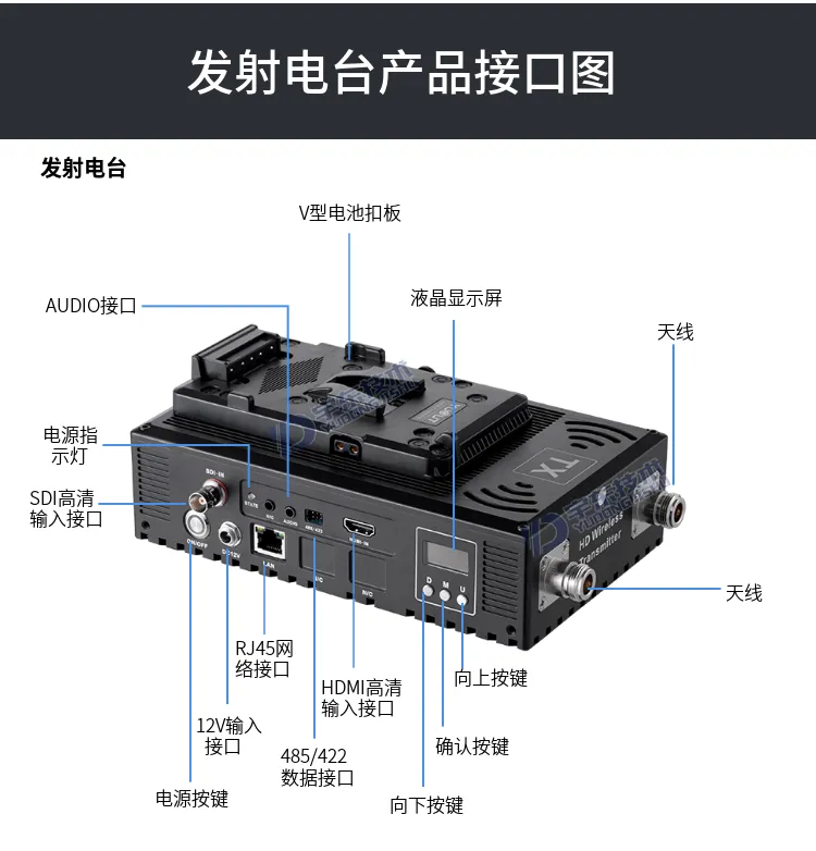 无线参数:(参数液晶可设置) 组网方式:点对点、点对多点(MAX 16 点)、中继组网 |
